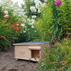 Het huisje kun je het best in een beschutte plek zetten. Het liefst op een enigszins begroeide plek of bij een schutting. Zodat ze ongezien het huisje in- en uit kunnen kruipen. Bedek het huisje met wat bladeren of takken. De opening kun je het best in noordoostelijke richting zetten.